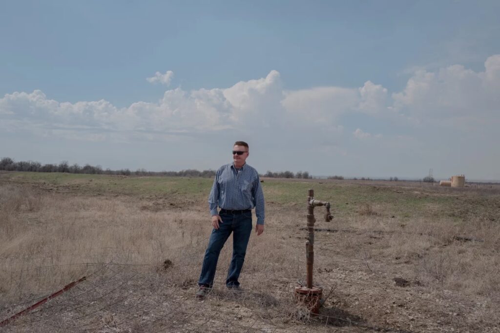 Dan Arthur, President and Chief Engineer of ALL Consulting, poses for a portrait at an idle oil well in the Tall Grass Prarie in Oklah., on March 20, 2024.